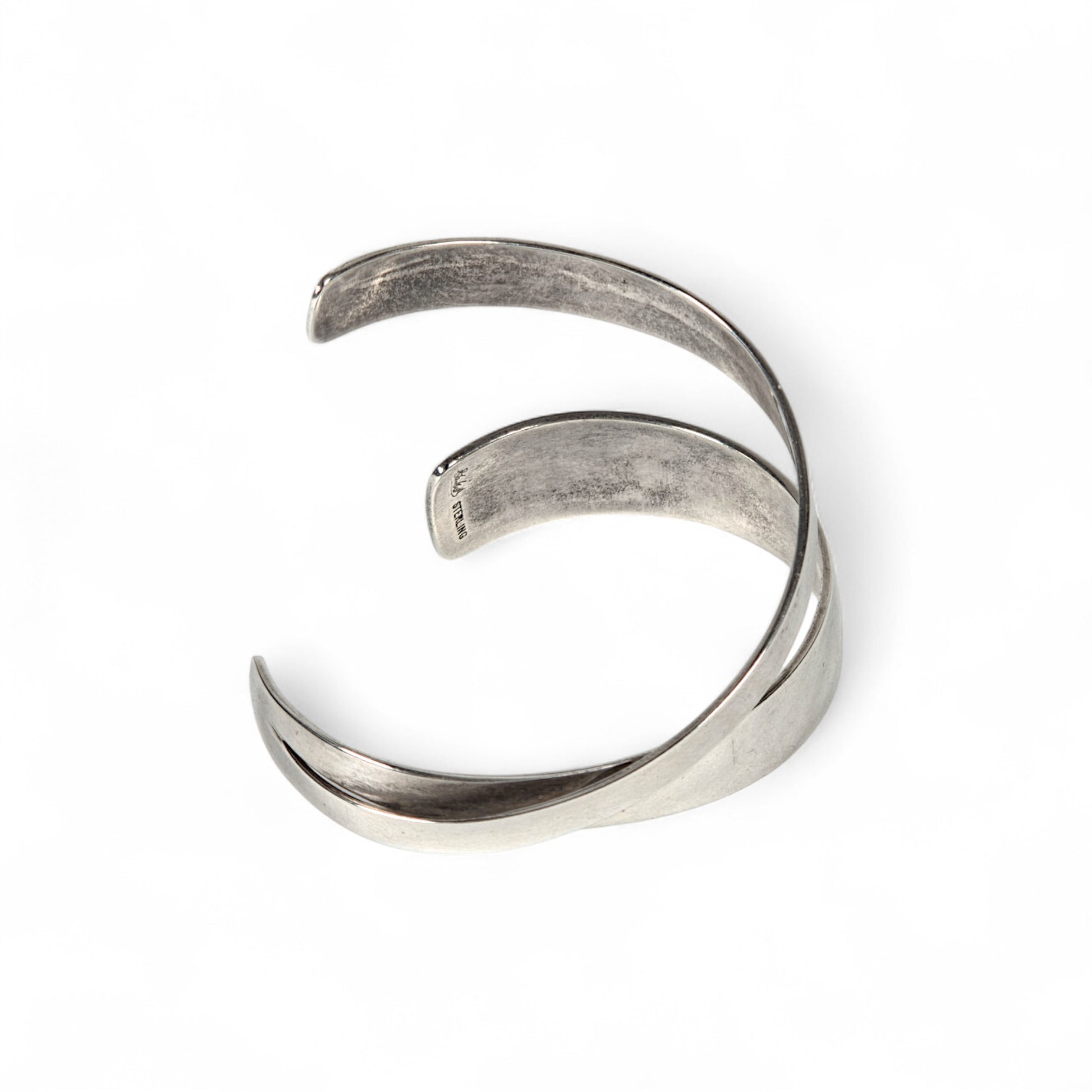 Details: Sterling silver cuff bracelet with crossover style design.