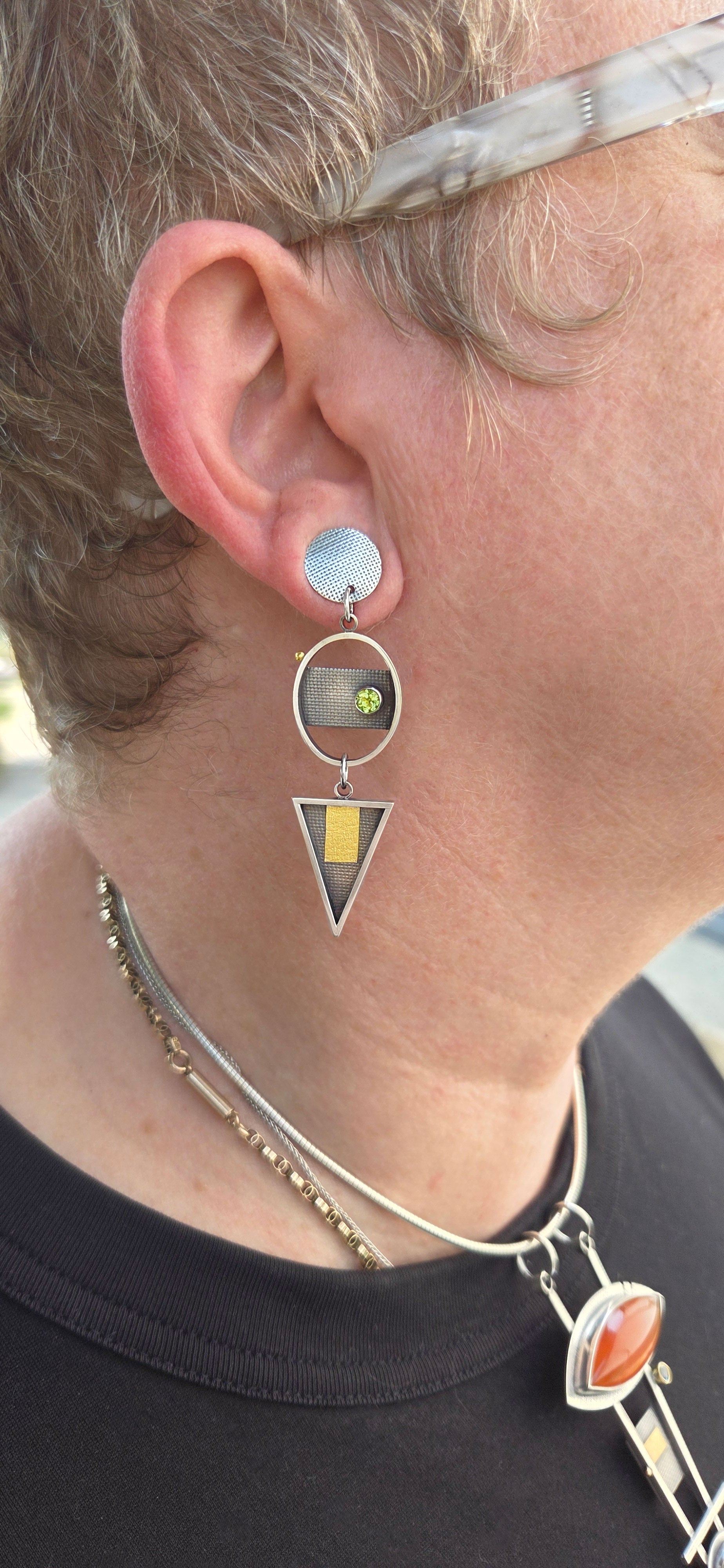 Triangle and Oval Sterling and Gold Peridot Earrings